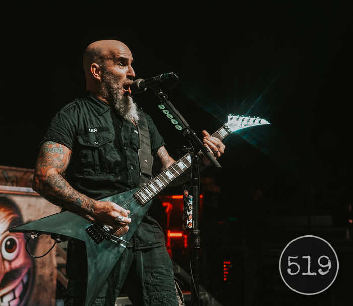 As Scott Ian and Joey Belladonna ride shoulder to shoulder bringing everyone to a bloody fury as Jonathan Donais holds down the fort at rhythm. From there the guys keep turning up the thermostat with the classic off their 1990’s album Persistence of Time the sluggie starting “Keep it in the Family” that end with a full fist to the face. One of my all-time favorite covers “Antisocial” originally by the band (Trust) done to perfection by Anthrax and they had all the fans singing right along. 40 years of perfecting their craft can they come out with so many powerful tunes and just rip through them with such electricity. Keeping with getting the crowd involved they broke into “I am the law” with chugging riffs and back and forth lyrics with the crowd chanting I am the law. Scott Ian looked completely locked in and possessed by this point. Scott Ian was ready for a total assault on your ears as he ripped you apart. Getting ready to set the trigger and blow this place up they marched into “In the End” and “Only” before opening with (Pantera’s Domination Breakdown) before running into “Got the Time”.