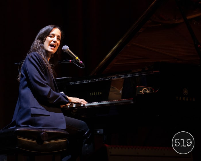 Chantal Kreviazuk performed her set seated at a large grand piano with coffee mug at her side and cell phone propped next to her keyboard to stream to her Instagram and Twitch followers. The atmosphere was homey and comfortable and she engaged the audience throughout the show as if they were in her living room like her personal guests.