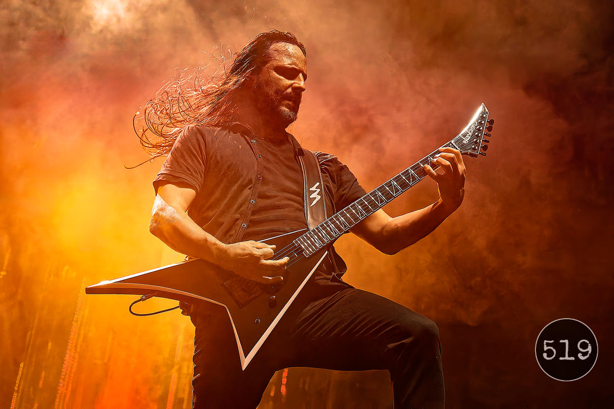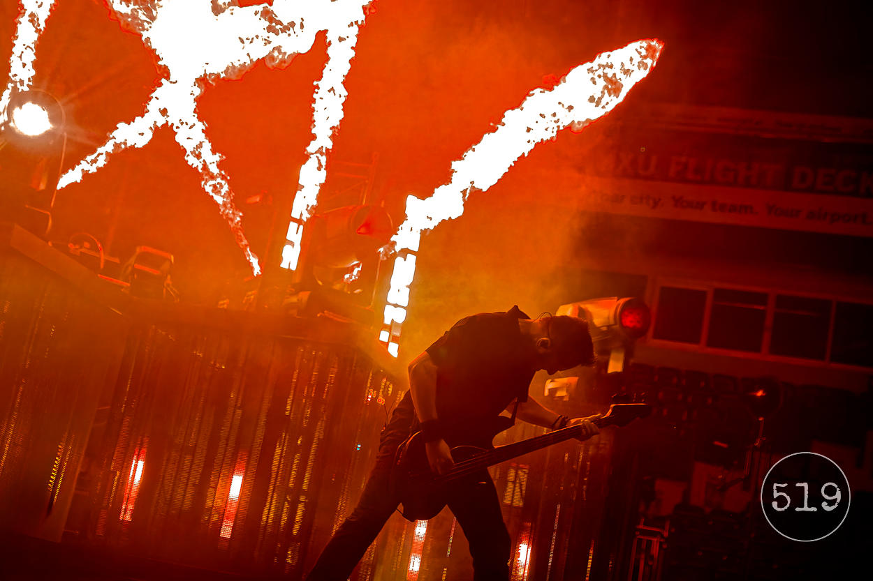 When Gojira took the stage, the French progressive death metal titans transformed Canada Life Place into an inferno. The pyrotechnics weren’t mere visual flourishes — they were extensions of the band’s apocalyptic sound, with flames erupting during “Only Pain” to establish immediate dominance. Frontman Joe Duplantier commanded the stage with shamanic intensity, his guttural roars matching the environmental fury embedded in the band’s lyrics.