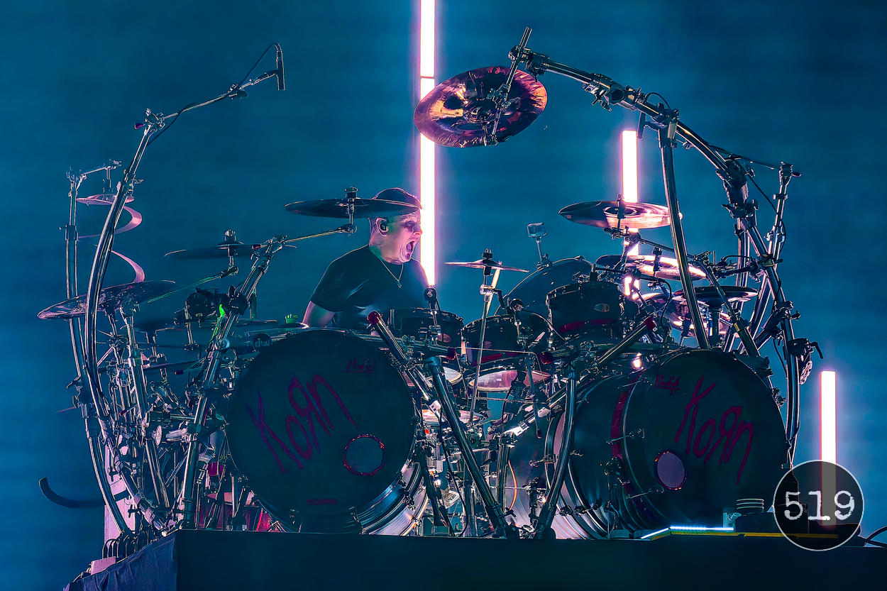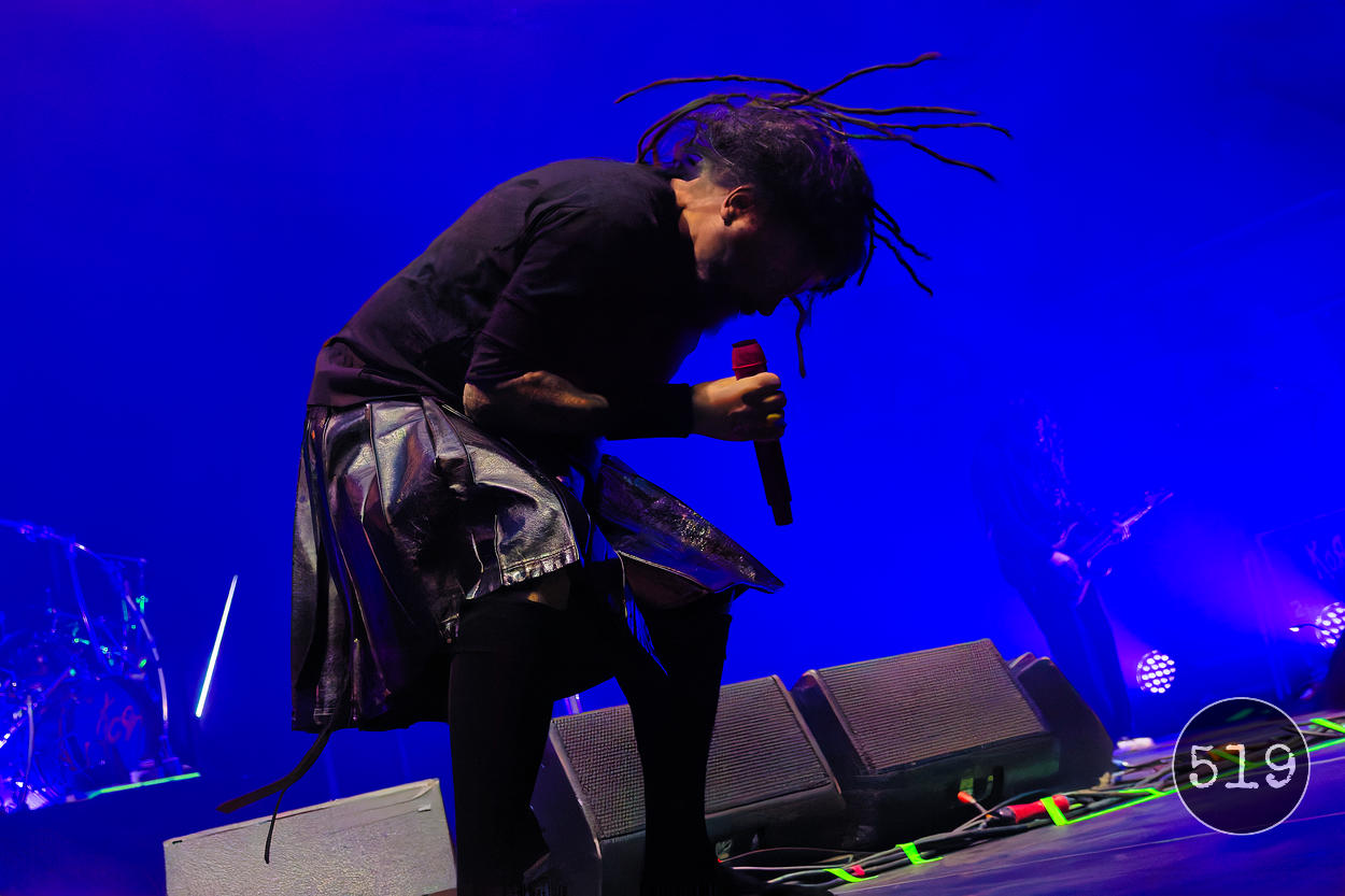 The nostalgia hit like a freight train the moment Korn’s opening riff tore through Canada Life Place on Sept. 22, transporting the sold-out London crowd back to a time when nu-metal ruled the airwaves and angst was currency. For longtime fans, witnessing Jonathan Davis prowl the stage while Brian “Head” Welch and James “Munky” Shaffer delivered those unmistakable seven-string grooves was nothing short of cathartic. The pure, unfiltered joy radiating from the audience — a mixture of Gen X veterans and younger metalheads discovering the band’s legacy — created an electric atmosphere that refused to dissipate throughout the evening’s assault.