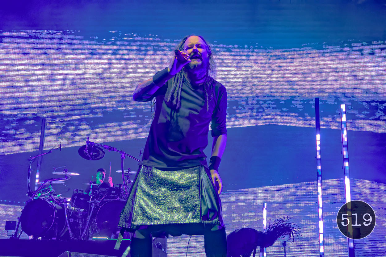 “Dirty” and “Somebody Someone” provided a dynamic shift, the latter’s melodic sensibility offering brief respite before “Y’All Want a Single” unleashed pure chaos. This track, written as a middle finger to record label pressure, saw Davis at his most confrontational, the crowd gleefully shouting along to its expletive-laden chorus. The song’s raw aggression reminded everyone why Korn has remained relevant — they’ve never compromised their vision.