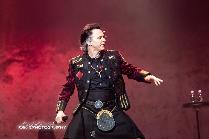 Concentrating heavily on the hit album Strange Animal, Gowan brought a huge stage show, giant lights and pyro to The Colosseum and pranced around the stage wearing a Scottish kilt and a military jacket with an emblem reading “In Kilt Tonight” on the arm.
