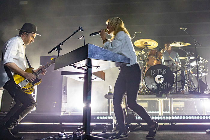 Emily Haines struts across the stage like she owns it and carries the mic stand like a boss. Her vocal style is light sounding but has a strength to it live that matches her stage attitude. Guitarist James Shaw is a skilled musician who neglected his own guitar parts somewhat on the last couple albums due to his producing duties – giving those albums a more synthesized sound – but the new album was produced by Justin Meldal-Johnsen. Meldal-Johnsen has worked with the likes of Beck and Nine Inch Nails, and this album resulted in a much harder edged vibe, returning the band to its earlier sound.