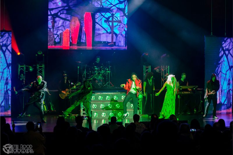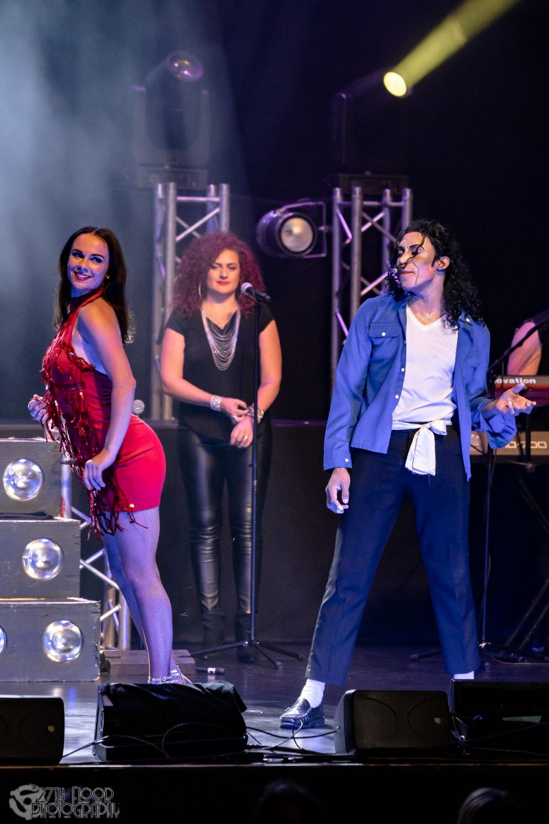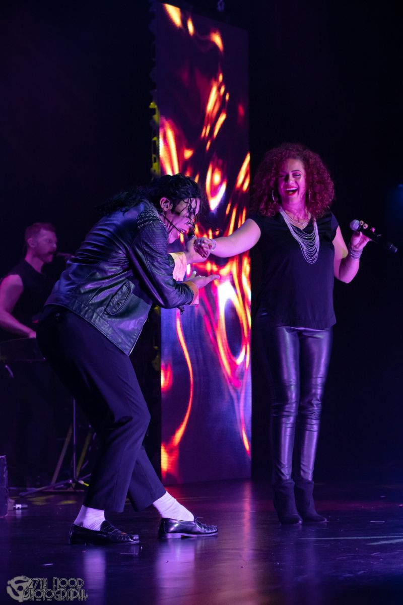 His interaction with the audience was fantastic, imploring them to get up and dance during several tunes and kneeling at the front of the stage and singing directly to several people in the crowd. At one point he leapt high off the stage into an aisle and walked through the audience while singing. During another song he brought a young girl on stage and sang to her, kneeling and kissing her hand afterward. Complimenting Dantanio was backup singer/duet partner Giselle Van Grinsven who did a great job filling in the vocals where needed. Of course the best was saved for last and for the encore with Thriller, complete with zombies and werewolves.