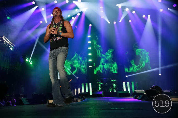 Their shorter set was to the point with hits like opener Look What The Cat Dragged In, Talk Dirty to Me, Your Mama Don’t Dance, the ballad Every Rose Has Its Thorn and the show ender Nothin’ But A Good Time. And with Poison it was most certainly a good time. Singer Bret Michaels was loaded with passion and seemed genuinely thrilled to be in front of the large crowd – “This has been two years in the making to get here,” he said before they launched into the 1990 single Ride The Wind from their huge album Flesh & Blood.