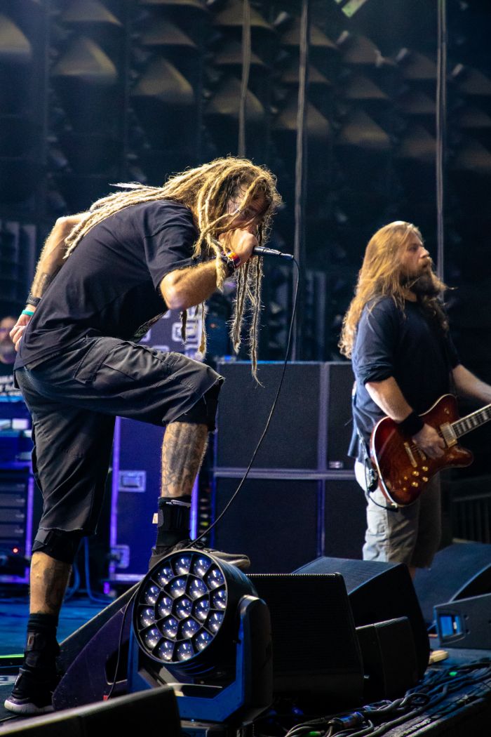 Tom Araya’s voice can still hit those high-pitched screams, and instrumentally the band hasn’t lost its edge, rather it sounds better than ever. If anything, the fans have changed more than the band. The fans who were there when the band broke out with their first studio album Show No Mercy in 1983 were in attendance, but it’s their kids now who are moshing, and mosh they did in a huge circle pit on the lawn in a steady downpour.