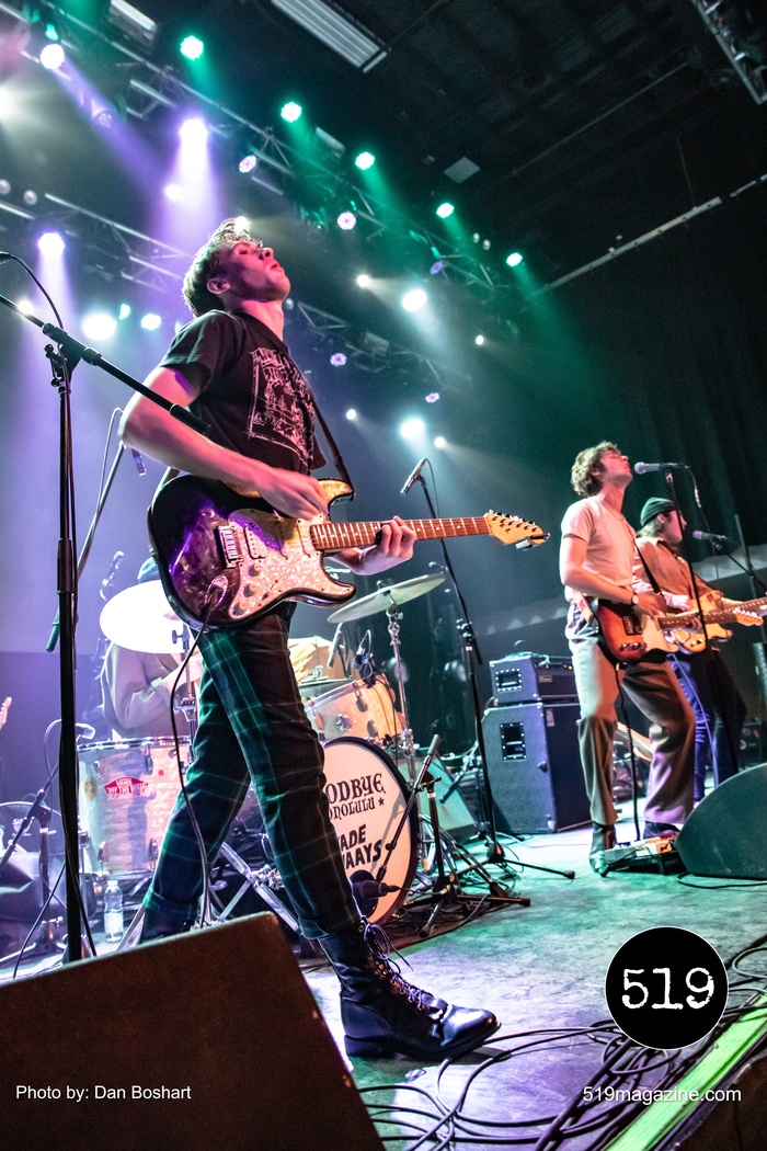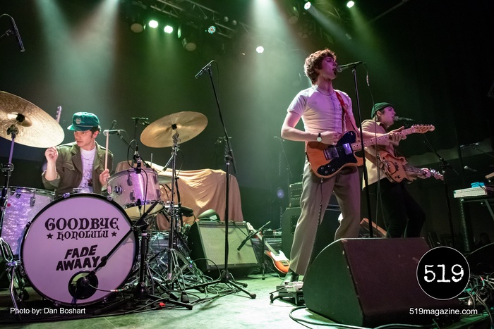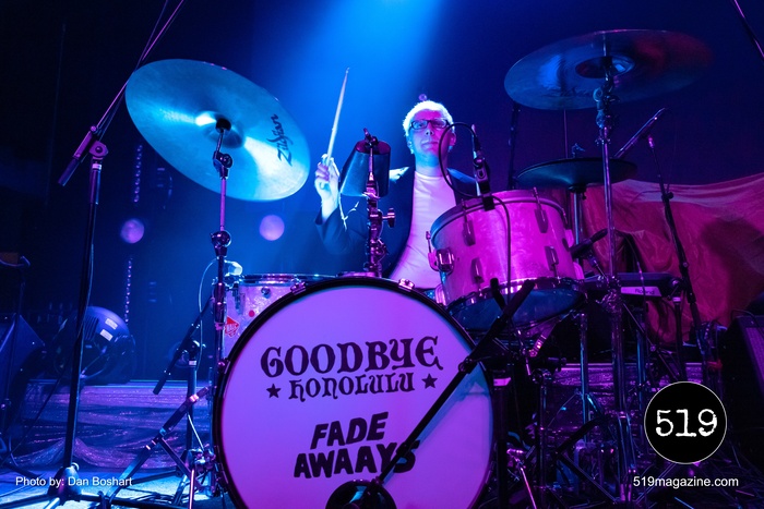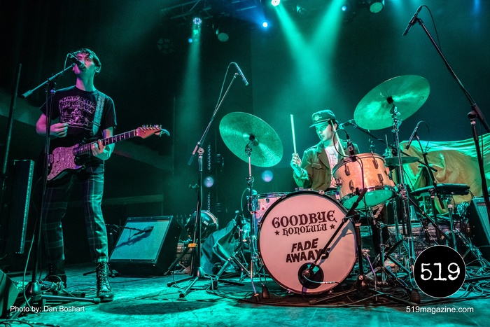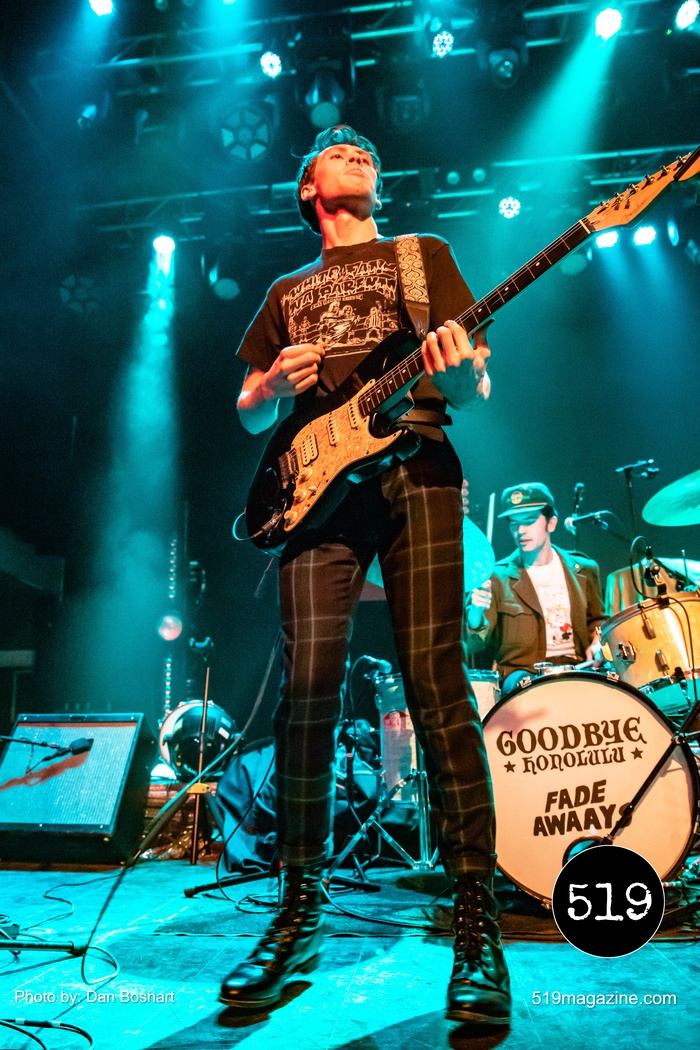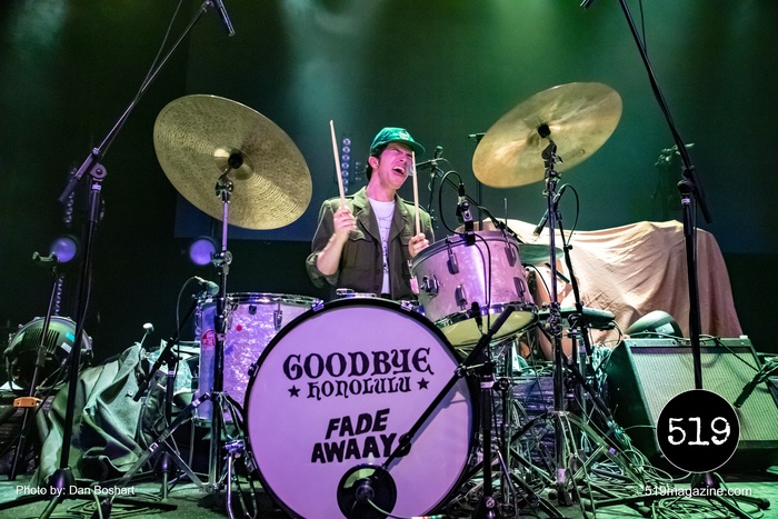 Starting the all-Toronto band night was Fade Awaays. The young alt rock quartet impressed with their stage energy and got the early crowd moving. The band mixes gritty guitars and melodic harmonies for a punk garage band sound that was the perfect choice for openers on this tour. Second up, Goodbye Honolulu, an alt/punk/pop outfit with a hard to peg sound that has hints of classic rock, alternate, funk, punk, and a little bit of everything else. Their music bounces between screaming guitar riffs and gentle melodies, sometimes all within the same song. Both openers shared a set of drums with both band names on the front, something I’ve never seen before but I thought it was kind of cool.