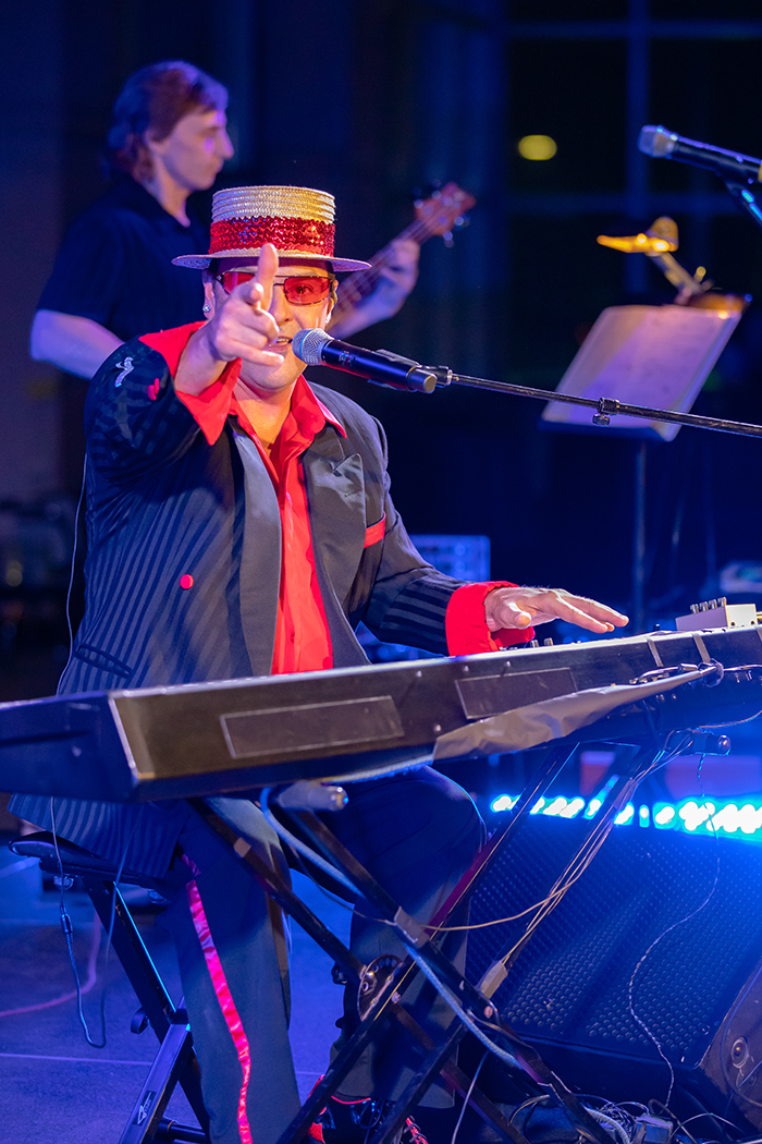 The four-piece band that made up the tribute show performed a competent selection of hits from each artist that had the crowd filling the large dance floor in front of the stage, as well as the two large areas on either side. At the break, the performer playing Elton made a costume change and came back as Billy, executing a convincing switch in vocals and appearance and keeping the dance party going for the rest of the evening.