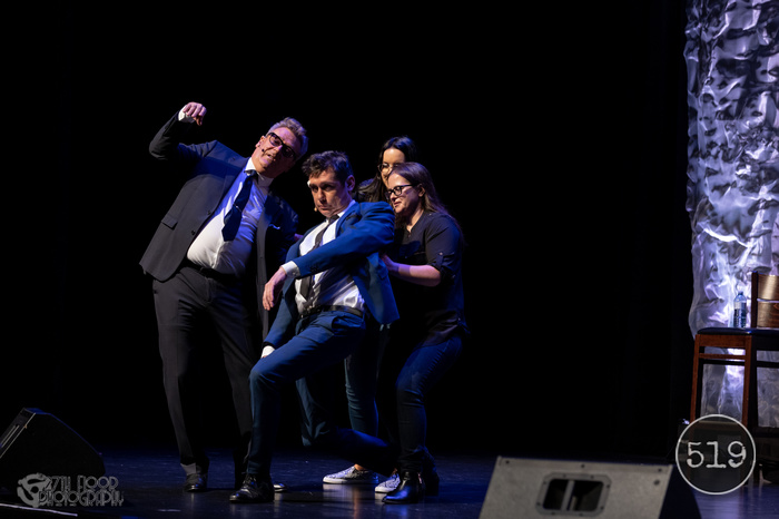 People in the front rows were asked before the show began to write one line sayings or set ups and deposit them in a basket. Throughout the show cast members removed the slips of paper and improvised based on what was written on them. There was also a lot of interaction with the cast asking the audience specific questions such as what is a popular festival, the LaSalle Strawberry Festival, was chosen, or an occupation such as milk man, which resulted in a hilarious singing skit involving milking a bull and making cheesecake.